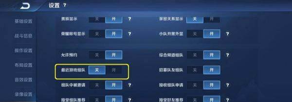 在王者荣耀中关闭最近游戏组队展示,可按以下步骤操作: