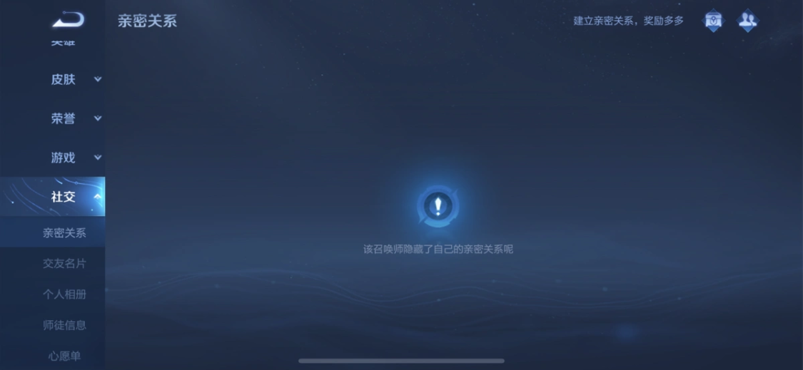 点击左侧列表的亲密关系,会发现可建立的关系。