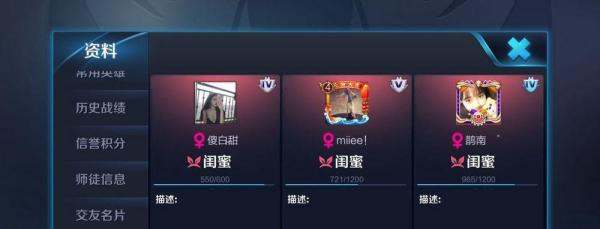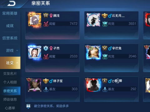 查看对方战绩中的组队信息若对方隐藏了亲密关系但未隐藏战绩,可通过其历史对局记录推测关联好友。进入对方战绩页面,查看其组队对局中的其他召唤师,点击其他召唤师头像进入其个人主页,可能发现与对方的亲密关系。