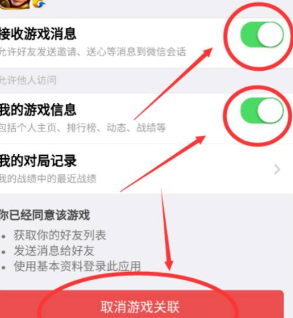 5、最后关闭“接收游戏消息”、“我的游戏信息”并“取消游戏关联”即可。