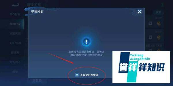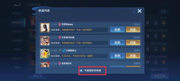 4:申请列表窗口下方可以看到“不接受好友申请”勾选后即完成王者荣耀设置操作。