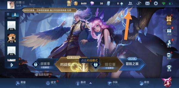1.登录游戏主界面,点击右上角的朋友图标(即两个头叠加)