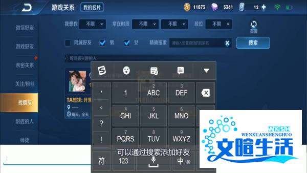 进入好友界面后点击找朋友选项,然后按照条件可以查找到其他玩家进行添加好友。