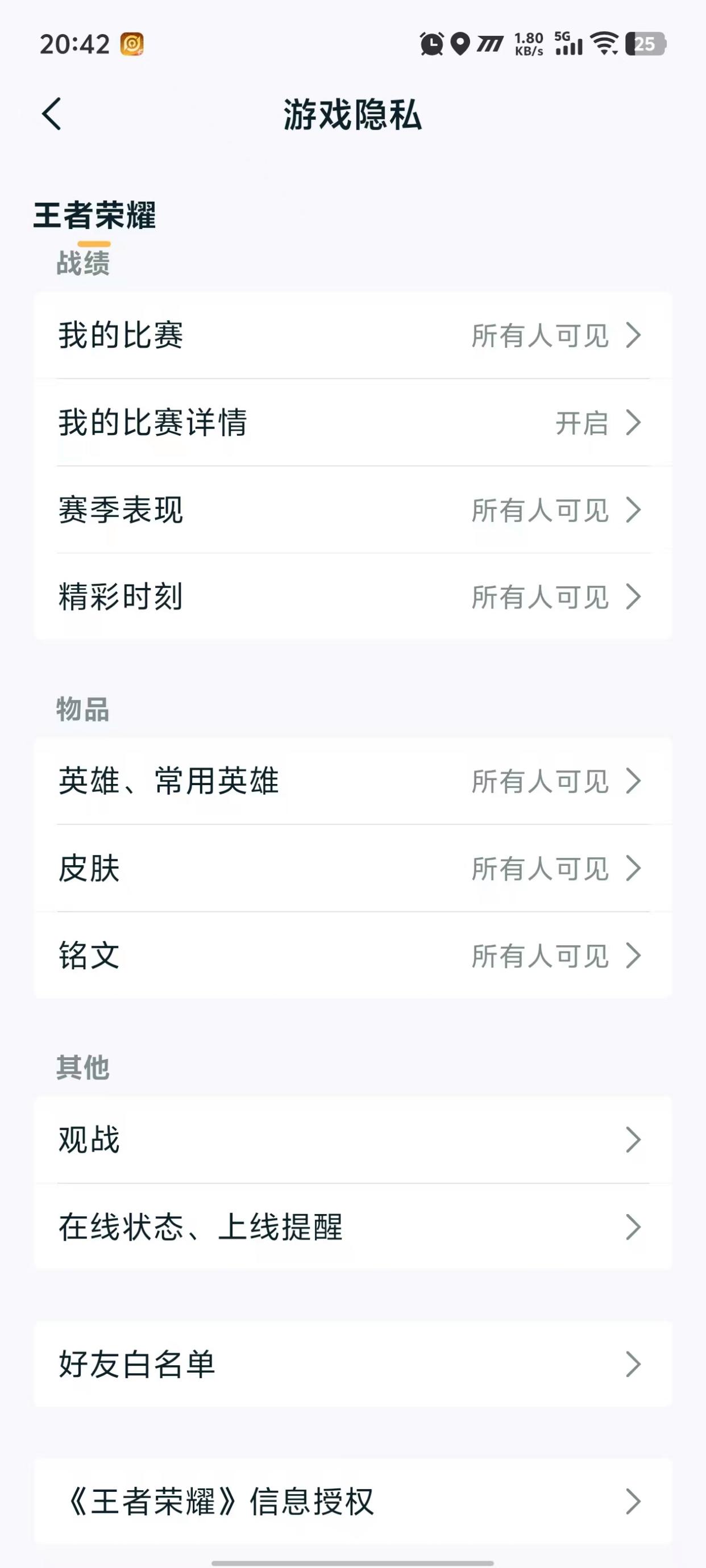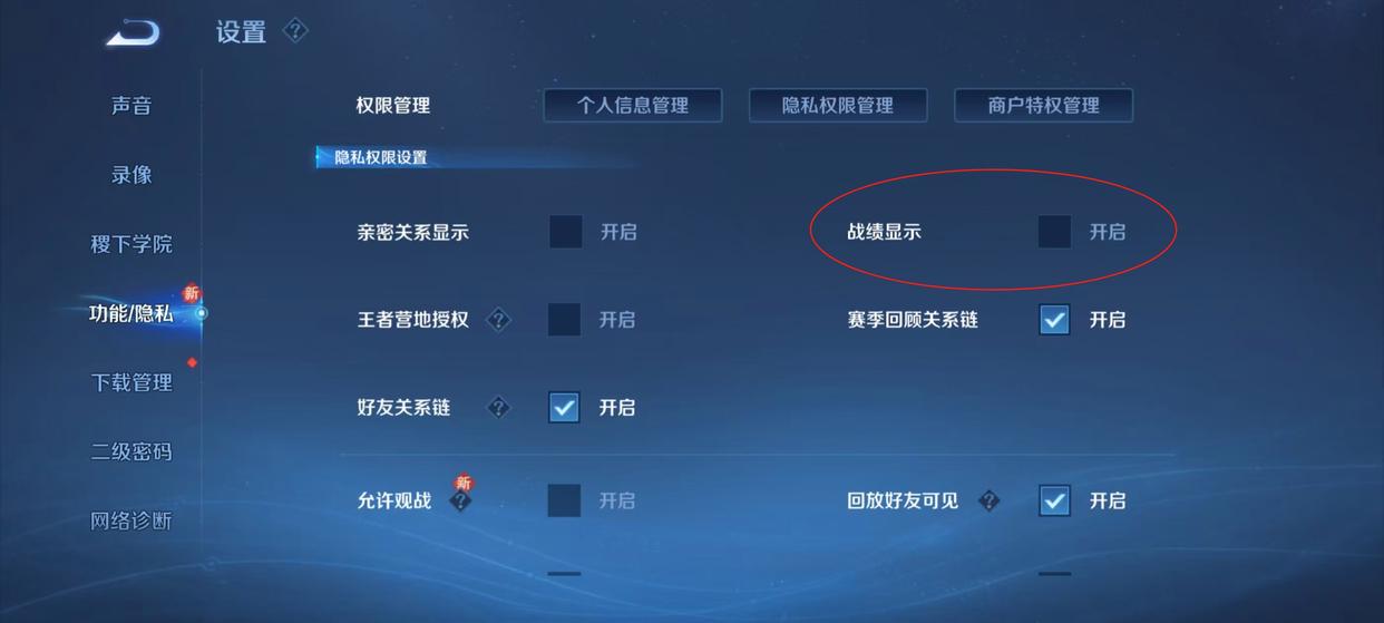 其他隐私设置:除了战绩显示,还可关闭“允许观战”“贵族等级显示”“亲密关系显示”等,进一步保护隐私