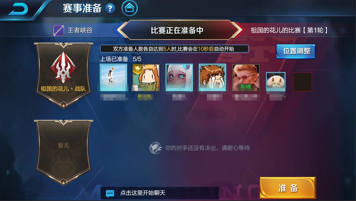 己方人员点击准备后可查看队伍准备情况。