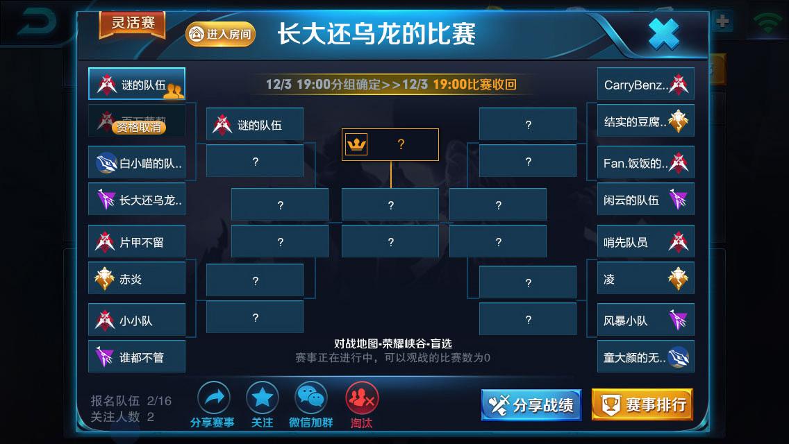 ②灵活淘汰赛:人齐即可开赛(适合线下比赛)。