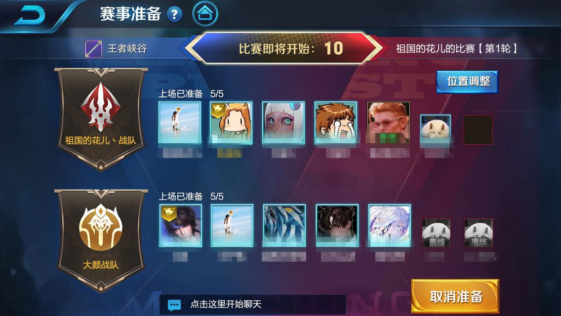 如果两方准备人数达到开启条件,中间开始显示倒计时。从10秒开始,中间可以取消准备,期间如果准备人数不够开启条件的话,中间倒计时消失。