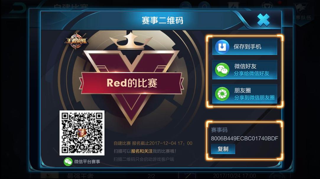 1)在“比赛界面”可以找到比赛传播,分享的三个方式:
