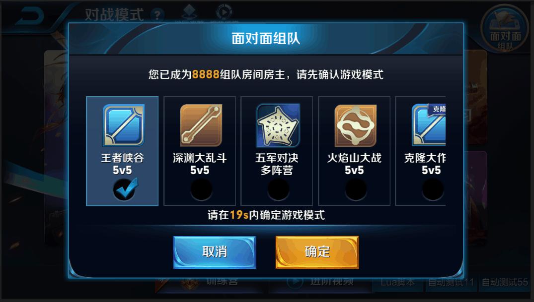 4、而面对面组队的游戏模式也是非常的丰富哦~包括了:克隆大作战、王者峡谷、五军对决、火焰山、长平攻防,房主需要在20秒内选定游戏模式游戏。