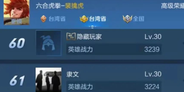 2、香港、澳门、台湾也是拿省标性价比很高的省份,王者的荣耀榜是根据荣耀战力来排名的,排名是从县级、市级、省级然后是国服,这个标志可以在你的优秀对局中显现出来,这也算是对你实力的一种认可。