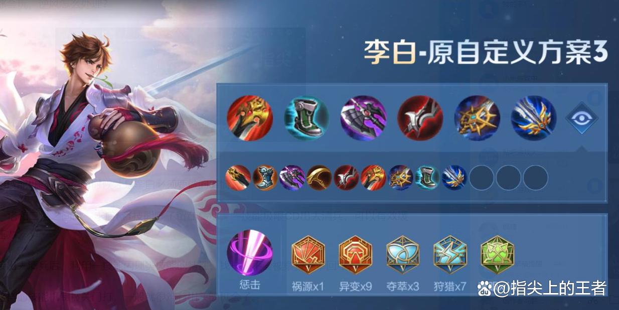 宗师之力增加攻速后,就又成了李白的核心装,所以这套出装很传统,且复古。