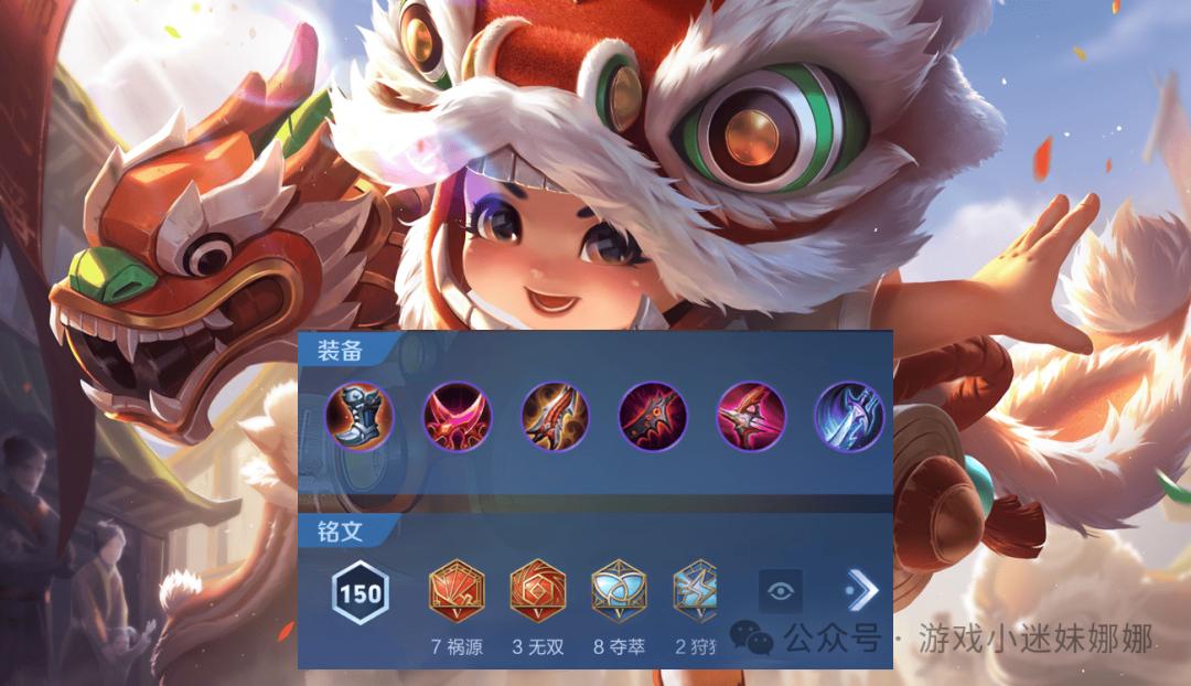 2、铭文搭配:狩猎x10 鹰眼x10 锅源x7 无双x3