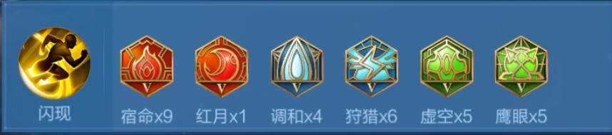 对抗路铭文推荐:4调和6狩猎、5虚空5鹰眼、9宿命1红月