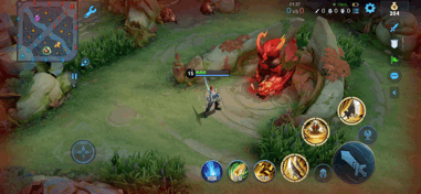 一技能有三个特点,当我们的技能末端来攻击目标时,我们的攻击是可以命中。但是我们实际的攻击效果,他是并不能直接命中的。在极限距离下,我们必须是斜着释放才可以成功命中的。第二个特点就是当我们向前使用一技能,我们的一技能虽然是会向前进行攻击,但是还可以命中身后敌人,但是只有第一段可以命中,第二段是不可以的。第三点当我们在草丛里面使用一技能第二段的时候,敌人是看不到我们的攻击范围的,在敌方的视野中只有被攻击以后才可以看到的。