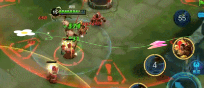 二技能(激热回旋):程咬金释放2技能以后,会对2技能范围内的敌人造成两段伤害,并且释放2技能的时候,还可以移动!这是程咬金伤害最高的一个技能,一般来说,主要就是靠这个技能加平A来清理兵线,或者攻击敌人的!