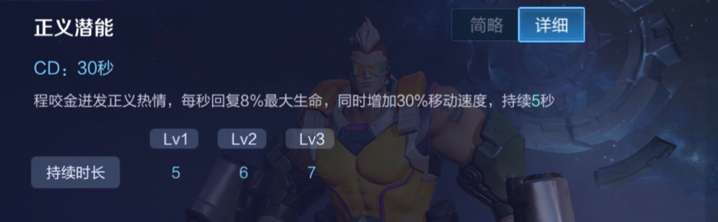 程咬金的回血技能,每秒可以回复8%最大生命值,并且释放期间还能为自身移速加成。
