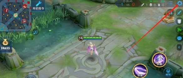 玩家需要先开启一局游戏。在游戏中点击右上角设置选项,再点击操作设置。